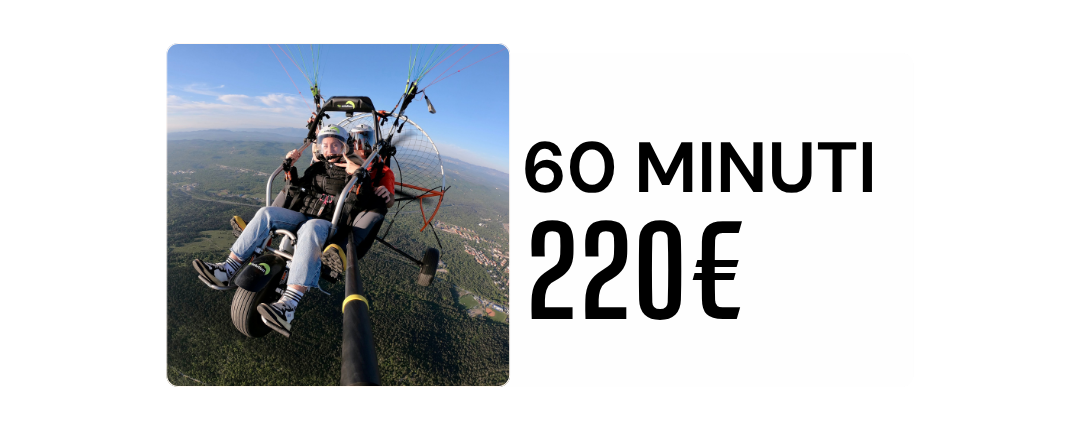 Pilota professionista con brevetto tandem, corso sicurezza in volo, assicurazione e iscrizione alla camera di commercio.